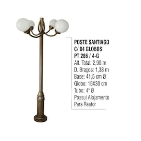 - Material: Alumínio Fundido e Tubo, Globo em Vidro.