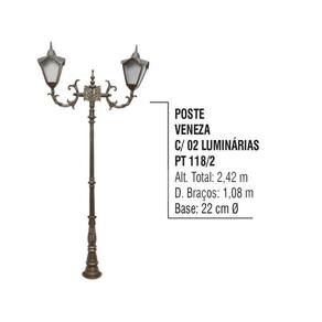 - Itens Inclusos: 01 Poste Colonial Veneza Jardim de Alumínio 02 Luminária 2,42m