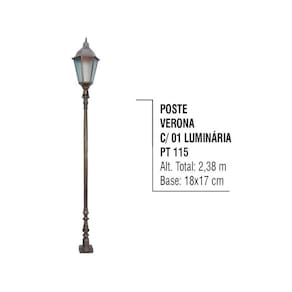 01 Poste Colonial Verona Jardim de Alumínio 01 Luminária 2,38m