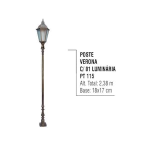 - Itens Inclusos: 01 Poste Colonial Verona Jardim de Alumínio 01 Luminária 2,38m