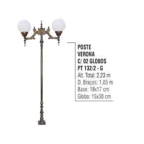 Poste Colonial Verona Para Jardim de Alumínio 02 Globo 2,23m