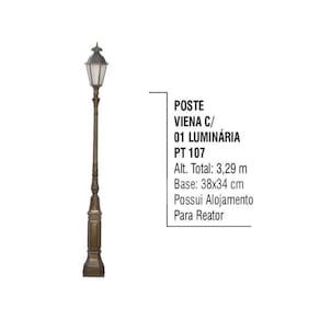 - Itens Inclusos: 01 Poste Colonial Viena P/ Jardim Alumínio 01 Luminária 3,29m