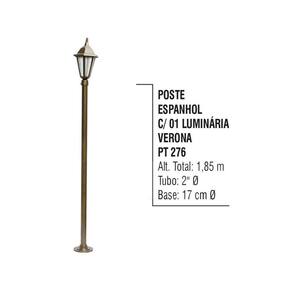 Poste Espanhol Jardim de Alumínio 01 Luminária Verona 1,85m