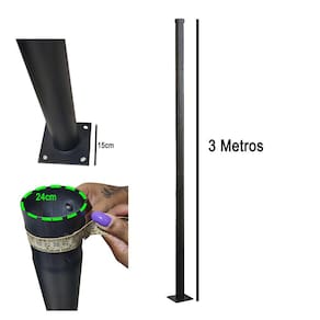 1 Poste de 3 Metros Aço Pintura Eletrostatica