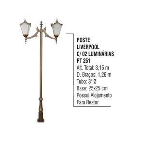 01 Poste Liverpool Para Jardim de Alumínio 02 Luminária 3,15m