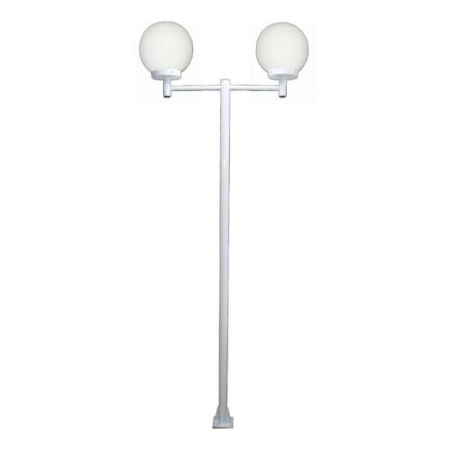 01 Poste Luminária Dupla Globo P Braço Reto Jardim Branco 300cm.