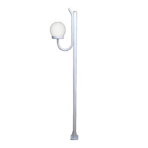 01 Poste Luminária Globo G Braço Curvo Cima Jardim Branco 200cm.