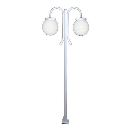 Poste Luminária Globo G Duplo Braço Curvo Baixo Branco 300cm
