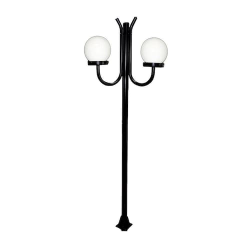 Poste Luminária Globo G Duplo Braço Curvo Cima Preto 300cm