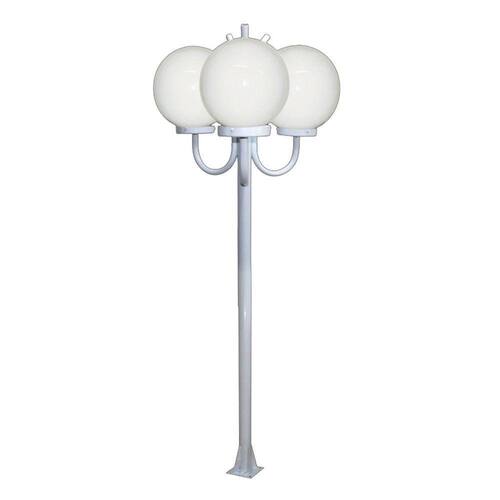 01 Poste Luminária Globo G Triplo Braço Curvo Cima Branco 300cm.