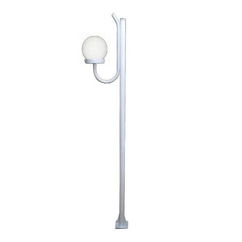 01 Poste Luminária Globo P Braço Curvo Cima Jardim Branco 200cm.
