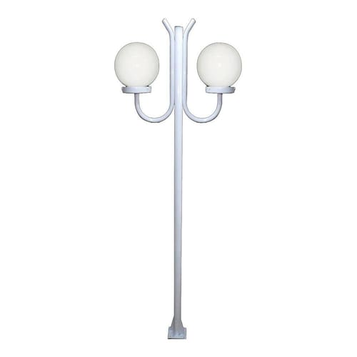 Poste Luminária Globo P Duplo Braço Curvo Cima Branco 300cm