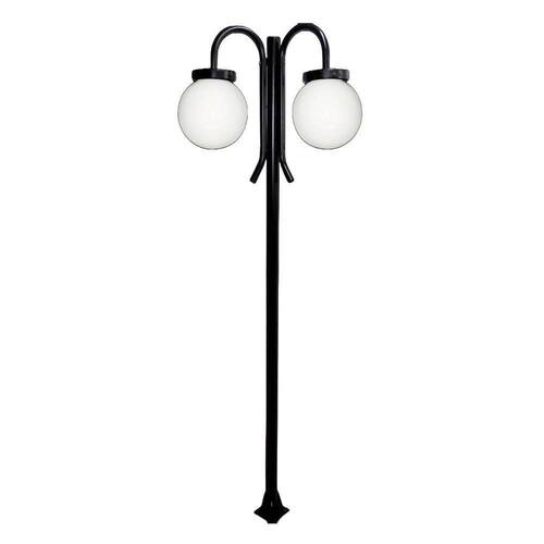 Poste Luminária Globo P Duplo Braço Curvo Cima Preto 200cm