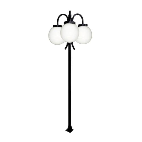 Poste Luminária Globo P Triplo Braço Curvo Baixo Preto 300cm