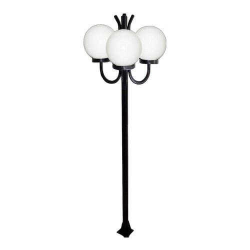 01 Poste Luminária Globo P Triplo Braço Curvo Cima Preto 300cm.