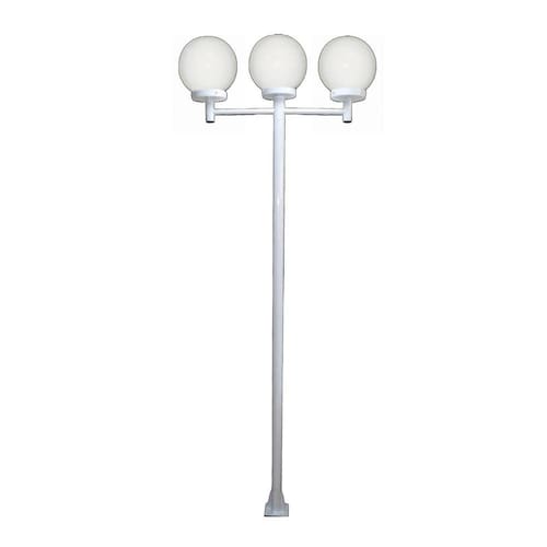 Poste Luminária Triplo Globo G Braço Reto Jardim Branco 2mt