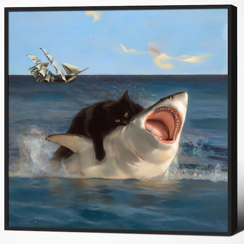 Adicione um toque divertido à decoração do seu quarto com nossa arte de parede Fat Cat Vs. Shark Meme e Black Cat vs. Octopus In Renaissance Painting Poster. Essas impressões peculiares e divertidas reúnem cenas de animais peculiares e arte clássica, perfeitas para iluminar qualquer espaço. Se você estiver decorando uma sala de estar, dormitório ou escritório, esta decoração de sala de parede de animais engraçados trará sorrisos e despertará conversas com seus designs criativos inspirados em memes. - Arte de parede Fat Cat vs. Shark Meme: Esta impressão hilária apresenta um confronto entre um gato gordinho e um tubarão, oferecendo uma visão humorística do formato clássico de meme. As cores ousadas e o design peculiar tornam esta peça uma adição divertida para qualquer cômodo que procura uma decoração alegre - Pôster de pintura Black Cat vs. Octopus In Renaissance: Esta obra de arte exclusiva combina pintura de estilo renascentista com um toque moderno, representando um gato preto feroz em uma batalha épica com um polvo. Perfeita para os amantes de arte peculiar, esta peça combina charme do velho mundo com humor moderno - Decoração de sala de arte de parede de animal engraçado: Ambas as impressões são projetadas para trazer uma atmosfera divertida e bem-humorada ao seu espaço. Estes pôsteres inspirados em animais são ideais para quem ama decoração engraçada e digna de memes em sua casa, dormitório ou escritório - Impressões em tela de alta qualidade: Impresso em tela de alta qualidade, esses pôsteres fornecem cores vibrantes e detalhes nítidos. O material de lona durável garante que suas impressões permaneçam uma peça de destaque em qualquer espaço, mantendo sua qualidade artística ao longo do tempo - Decoração versátil para qualquer cômodo: se você deseja adicionar personalidade à sua sala de estar, quarto ou escritório em casa, essas impressões se encaixam perfeitamente em vários estilos de decoração. Seus designs alegres são perfeitos para adicionar um toque de humor e criatividade ao seu espaço