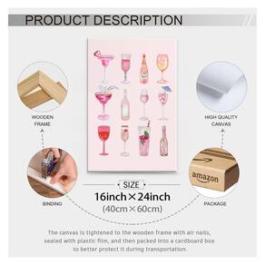 Este pôster com tema de bebida combina um estilo romântico "pouco fofo", cheio de diversão e elegância. A imagem retrata uma taça de coquetel requintada com uma forte atmosfera retrô e romântica. Seja colocado em um bar, restaurante ou sala de estar, pode melhorar instantaneamente o gosto e o estilo do espaço, como se estivesse convidando você a entrar em um lugar social cheio de reuniões e relaxamento. Este pôster não é apenas uma decoração única, mas também transmite uma atitude descontraída e moderna em relação à vida - Arte de parede em tela rosa: os pôsteres de carrinho de bar têm 40 x 61 cm, esta linda arte de parede é embrulhada e esticada sobre moldura de madeira. Pronta para ser pendurada diretamente, você pode criar uma atmosfera moderna e vibrante - Cartazes duráveis e de alta qualidade: arte de parede rosa claro Use tinta de proteção ambiental de alta qualidade, não desbota facilmente, cores vivas, à prova d'água, resistente a UV, sem odor. A arte de parede em tela rosa adicionará um toque de estilo e personalidade às suas paredes - Decoração de parede elegante: este pôster com tema de bebida combina um estilo romântico "pouco fofo", cheio de diversão e elegância. Os pôsteres elegantes podem fornecer decoração para cozinha, sala de jantar, bar, dormitório, sala de estar, quarto, apartamento, hotel, escritório - Presentes modernos: a imagem retrata um copo de coquetel requintado com uma forte atmosfera retrô e romântica. Seja dado como aniversário, Natal, presente de férias, inauguração de casa ou qualquer outra ocasião especial, a arte de parede em tela rosa surpreenderá e encantará o destinatário - Serviço pós-venda: Valorizamos muito sua experiência de compra, se você tiver algum problema com a arte de parede de coquetel, por e-mail na primeira vez. Esperamos resolver quaisquer problemas que você possa encontrar de forma rápida e eficiente