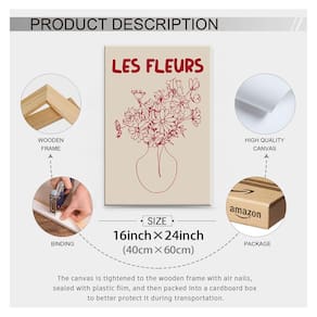 A combinação de pôsteres vintage e arte de parede floral pode adicionar um toque único a qualquer espaço. Na parede, uma série de pôsteres vintage requintados são pendurados, acompanhados por padrões florais delicados, criando uma atmosfera calorosa e emocional. Este design não apenas faz as pessoas sentirem o charme do passado, mas também traz vitalidade natural à vida moderna. A combinação de pôsteres vintage e arte de parede floral pode adicionar um charme e charme únicos a qualquer espaço. Padrões florais injetam vitalidade e vitalidade naturais neste estilo retrô. A delicada obra de arte floral, mostrando texturas e cores ricas, complementa os pôsteres vintage e cria um efeito visual harmonioso. Em tal ambiente, o espectador pode não apenas apreciar a beleza da arte, mas também sentir o sopro da primavera, como se estivesse no jardim - Cartazes de plantas: o tamanho da arte de parede moderna é de 40,6 x 61 cm, impressões florais embrulhadas e esticadas sobre moldura de madeira, para criar um efeito 3D imersivo que faz a obra de arte parecer ótima - Cartazes duráveis e de alta qualidade: pôsteres de arte usam tinta de proteção ambiental de alta qualidade, não desbota facilmente, cores vivas, à prova d'água, resistente a UV, sem odor. A decoração de parede de arte de parede de plantas adicionará um toque de estilo e personalidade às suas paredes - Arte de parede vermelha: a combinação de pôsteres vintage e arte de parede floral pode adicionar um toque único a qualquer espaço. As estampas florais fornecem decoração para cozinha, sala de jantar, bar, dormitório, sala de estar, quarto, apartamento, hotel, escritório - Presentes divertidos: a combinação de pôsteres vintage e arte de parede floral pode adicionar um charme e charme únicos a qualquer espaço. Seja dado como presente de aniversário, Natal, inauguração de casa ou qualquer outra ocasião especial, as impressões botânicas vintage surpreenderão e encantarão o destinatário - Serviço pós-venda: Valorizamos muito sua experiência de compra, se você tiver algum problema com a arte de parede minimalista. Você pode entrar em contato conosco por e-mail na primeira vez. Esperamos resolver quaisquer problemas que você possa encontrar de forma rápida e eficiente