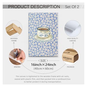 Como um modelo de arte de parede rural, os pôsteres de café estilo retrô não são apenas uma decoração, mas também um reflexo de uma atitude de vida. Esses pôsteres geralmente usam tons suaves e elementos de design clássicos, mostrando uma forte atmosfera nostálgica. As xícaras de café antiquadas trazem as pessoas de volta àquela era de lazer, fazendo com que as pessoas sintam uma vida simples e bonita. Pendurar um pôster na cozinha ou restaurante pode melhorar instantaneamente o calor do espaço, como se você pudesse sentir o cheiro do café a qualquer momento, inspirando o amor das pessoas por alimentos e bebidas. Além disso, os pôsteres retrô de café também são muito adequados para uso em cafés ou espaços de lazer para criar uma atmosfera relaxante e agradável. Em tal ambiente, os clientes desfrutam do café perfumado e sentem a forte atmosfera artística, como se estivessem em um espaço cheio de inspiração e criatividade. - Arte de parede moderna: o tamanho da arte de parede de café é de 40,6 x 61 cm, estes pôsteres modernos enrolados e esticados sobre moldura de madeira, para criar um efeito 3D imersivo que faz a arte parecer ótima - Cartazes duráveis e de alta qualidade: pinturas usam tinta de proteção ambiental de alta qualidade, não desbota facilmente, cores vivas, à prova d'água, resistente a UV, sem odor. A arte de parede em tela abstrata adicionará um toque de estilo e personalidade às suas paredes - Arte de parede retrô: pôsteres de café em estilo retrô não são apenas uma decoração, mas também um reflexo de uma atitude de vida. O pôster vintage fornece decoração para cozinha, sala de jantar, bar, dormitório, sala de estar, quarto, apartamento, hotel, escritório - Presentes divertidos: xícaras de café antiquadas trazem as pessoas de volta àquela era de lazer, fazendo com que as pessoas sintam uma vida simples e bonita. Seja dado como presente de aniversário, Natal, inauguração de casa ou qualquer outra ocasião especial, as impressões de arte vintage surpreenderão e encantarão o destinatário - Serviço pós-venda: valorizamos muito sua experiência de compra, se você tiver algum problema com o pôster de café. Você pode entrar em contato conosco por e-mail na primeira vez. Esperamos resolver quaisquer problemas que você possa encontrar de forma rápida e eficiente
