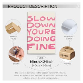 Radie positividade com o pôster "Slow Down, You're Doing Fine", uma afirmação comovente para qualquer espaço. Com tons rosa suaves, esta decoração de parede serve como um lembrete diário para abraçar a jornada e celebrar o progresso. Quartos, escritórios ou qualquer lugar em que você precise de um incentivo, complementa lindamente outros pôsteres rosa. Infunda ao seu redor vibrações edificantes e motivação suave, tornando cada dia um passo em direção ao crescimento pessoal e bem-estar. - Decoração de parede de afirmação: o tamanho da arte de parede descolada é de 40,6 x 61 cm, esta decoração de parede feminina é enrolada e esticada sobre moldura de madeira, para criar um efeito 3D imersivo que torna a obra de arte ótima - Cartazes duráveis e de alta qualidade: pôsteres estéticos rosa usam tinta de proteção ambiental de alta qualidade, não desbota facilmente, cores vivas, à prova d'água, resistente a UV, sem odor. A arte de parede com citação adicionará um toque de estilo e personalidade às suas paredes - Cartazes para quarto de meninas adolescentes: com tons suaves de rosa, esta decoração de parede serve como um lembrete diário para abraçar a jornada e celebrar o progresso. Decoração de parede rosa choque que pode fornecer decoração para cozinha, sala de jantar, bar, dormitório, sala de estar, quarto, apartamento, hotel, escritório, casa de praia costeira - Presente inspirador: irradie positividade com o pôster "Slow Down, You're Doing Fine", uma afirmação comovente para qualquer espaço. Seja dado como aniversário, Natal, presente de férias, inauguração de casa ou qualquer outra ocasião especial, pôsteres rosa irão surpreender e encantar o destinatário - Serviço pós-venda: valorizamos muito sua experiência de compra, se você tiver algum problema com os pôsteres inspiradores, por e-mail na primeira vez. Esperamos resolver quaisquer problemas que você possa encontrar de forma rápida e eficiente