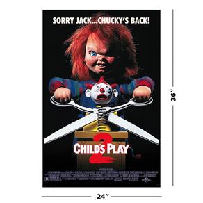 - Pôster de filme premium de 61 cm x 91 cm com o icônico design de Brinquedo Assassino 2 e o slogan "Desculpa Jack... Chucky está de volta!"