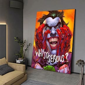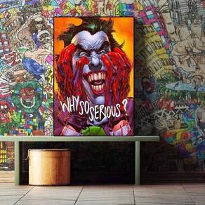 Tamanho: 40 x 60 cm Peso: 200 g Material: tecido Embalagem: 1 x Impressão em tela (sem moldura) Esta pintura artística de parede é inspirada no tema clássico “Why So Serious”, com um retrato no estilo vilão palhaço escuro que expressa loucura, drama e poderoso impacto visual emocional. Feita de material de tecido premium, esta pintura artística de parede mede 40x60cm e pesa apenas 200g, tornando-a leve, fácil de pendurar e perfeita para decoração de parede moderna sem moldura. A tecnologia de impressão de alta definição garante cores fortes, linhas nítidas e contraste forte, permitindo que esta pintura artística de parede mantenha uma aparência intensa e vívida durante uma exibição de longo prazo. Ideal para salas de estar, quartos, escritórios, estúdios, salas de jogos ou espaços temáticos de filmes, esta pintura de parede ilustrada adiciona uma atmosfera artística dramática e uma personalidade ousada aos interiores. Cuidlosamente embalada com suporte confiável de atendimento ao cliente, cada pintura artística de parede é entregue com segurança e projetada para atender às altas expectativas de qualidade, durabilidade e impacto decorativo.