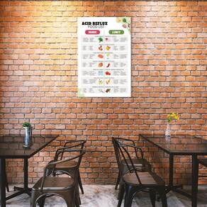 - ealthy Food Wall Art: rotect your health with food. Aprenda a combater o refluxo ácido naturalmente com dieta com nosso pôster informativo. Saiba mais sobre os melhores alimentos de baixa acidez GERD, obtenha receitas deliciosas e leia dicas de especialistas apoiadas pelas pesquisas mais recentes.