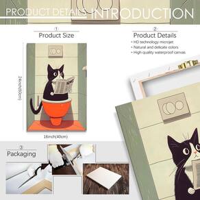 Transforme sua casa com a arte engraçada de parede de gato preto de banheiro – um pôster de tela encantador e bem-humorado que captura a essência de um gato animal fofo lendo um jornal no vaso sanitário. Esta linda peça de decoração de parede é perfeita para meninas amantes de gatos e qualquer pessoa que aprecia arte peculiar e charmosa. Projetada para caber perfeitamente em vários espaços, como banheiros, quartos, salas de estar, escritórios, cozinhas de fazendas e muito mais, esta arte de parede adiciona um toque único e peculiar ao seu interior. Feita de material de lona de alta qualidade, oferece cores vibrantes e durabilidade, garantindo que permaneça uma bela adição à sua casa por muitos anos. Escolha entre uma variedade de designs estéticos, descolados, retrô, vintage, modernos, minimalistas e coloridos para combinar com seu estilo pessoal. Se você estiver decorando seu próprio espaço ou procurando um presente atencioso, esta arte de parede certamente trará alegria e risadas a qualquer cômodo. Faça uma declaração com esta peça única e encantadora hoje! - Design exclusivo e bem-humorado: esta arte engraçada de parede de gato preto de banheiro apresenta um gato animal fofo lendo um jornal no vaso sanitário, adicionando um toque peculiar a qualquer cômodo. Ideal para amantes de gatos e aqueles que apreciam uma decoração peculiar e charmosa. - Posicionamento versátil: Perfeito para melhorar o ambiente do seu banheiro, quarto, sala de estar, escritório, cozinha de fazenda ou qualquer cômodo da sua casa. O design versátil garante que ele se encaixe perfeitamente em vários estilos de interiores. - Material de tela de alta qualidade: Feito de material de lona premium, esses pôsteres são duráveis, resistentes ao desbotamento e fornecem cores vibrantes que durarão anos. Elas são leves, mas resistentes, o que as torna fáceis de pendurar e manter. - Apelo estético: Disponível em uma variedade de designs estéticos, descolados, retrô, vintage, modernos, minimalistas e coloridos, esta arte de parede adiciona personalidade e charme a qualquer espaço. É perfeita para criar uma atmosfera aconchegante e convidativa em sua casa. - Ideia de presente perfeita: se você está decorando seu próprio espaço ou procurando um presente atencioso para um amante de gatos, esta arte de parede única certamente encantará. É uma excelente escolha para aniversários, inaugurações de casa ou qualquer ocasião especial.