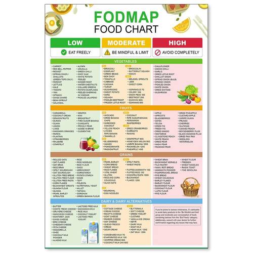 Fodmap Food Chart Posters Nutrition Healthy Gut Food List Wall Art Gluten Diet Meal Prep Guide for IBS Individuals & Low Fodmap Diet