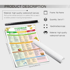 - ?Materiais de alta qualidade?: Tabela de alimentos Fodmap feita de material de lona de alta qualidade, com cores brilhantes e padrões claros, adiciona um toque de saúde e vitalidade à sua casa.