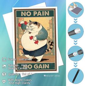 Transforme seu espaço de vida com a arte de parede Funny Cat Workout – um pôster de tela de gato de academia que combina humor, inspiração e estilo. Esta cena de musculação e levantamento de peso de gato gordinho não é apenas visualmente impressionante, mas também incorpora a filosofia "No Pain No Gain", tornando-a perfeita para aqueles que amam decoração motivacional e peculiar. A impressão de alta qualidade e a tela durável garantem que as cores vibrantes e os detalhes intrincados permaneçam intactos, proporcionando prazer duradouro. Adequado para vários cômodos, incluindo sala de estar, quarto, escritório, cozinha de fazenda e banheiro, este pôster aprimora qualquer configuração com sua estética descolada, retrô e minimalista. Pendure esta peça única de arte de parede acima do seu sofá, na academia de sua casa ou em qualquer lugar que você precise de um toque de inspiração e risadas. Eleve seu jogo de decoração com este pôster charmoso e funcional que promete ser um iniciador de conversa e uma fonte de motivação por muitos anos. - Design inspirador e motivacional: apresentando um gato gordinho envolvido em musculação e levantamento de peso, este pôster engraçado de arte de parede para treino de gato traz um toque único à decoração motivacional. Perfeito para entusiastas de academia ou qualquer pessoa que aprecia impressões peculiares e inspiradoras. - Opções de colocação versáteis: ideal para decorar vários espaços, como sala de estar, quarto, escritório, cozinha de fazenda e banheiro. Este pôster de tela versátil adiciona uma estética descolada, retrô e minimalista a qualquer cômodo, melhorando o ambiente geral. - Impressão e materiais de alta qualidade: feito de material de lona premium, este pôster de gato de academia garante cores vibrantes e detalhes nítidos que não desbotam com o tempo. A estrutura durável o torna adequado para exibição interna e externa, mantendo seu apelo visual. - Filosofia sem dor sem ganho: abrace o espírito "No Pain No Gain" com esta obra de arte encantadora e bem-humorada. Serve como um lembrete diário para se manter motivado e superar desafios, o que o torna um excelente complemento para academias domésticas ou áreas de treino. - Decoração de parede elegante e funcional: projetada para complementar estilos de interiores modernos e vintage, esta arte de parede se encaixa perfeitamente em qualquer tema de decoração. Seja pendurado acima de um sofá, em uma parede ou em um corredor, ele cria um ponto focal que convida a conversas e admiração.