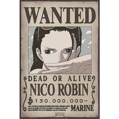 Pôster de One Piece ¨se Busca¨ Wanted¨ da Arqueóloga do Chapéu de Palha com sua recompensa de 320.000.000 Million Belly. em formato de papel kraft de 150 gr. Enfeite seu espaço favorito com seus personagens favoritos de one piece. Produto protegido com caixa de papelão tubular para chegar em perfeitas condições.