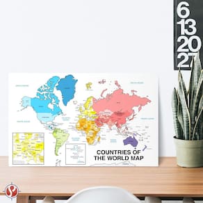 Aprenda e memorize os países do mundo com este mapa-múndi educacional 11 x 17 — A ferramenta de aprendizado perfeita para crianças, estudantes e adultos!