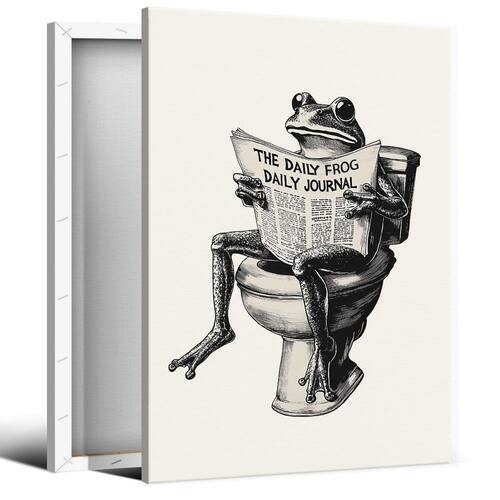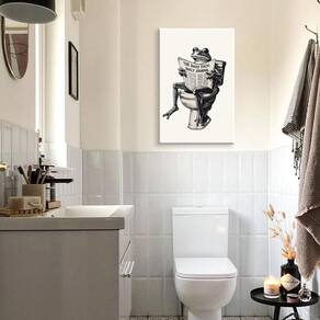 - Impressão de jornal de leitura de sapo engraçado no vaso sanitário: Esta impressão hilária captura um sapo em um momento de banheiro relacionável e cômico, tornando-a a decoração ideal para banheiros ou lavabos