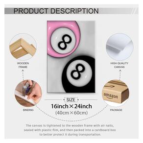 Explore nossa coleção de decoração de parede inspirada no Y2K, com uma seleção de pôsteres rosa e preto e estilo vintage. Seja você um fã de nostalgia ou procurando um elemento decorativo moderno, nossos pôsteres vintage de 8 bolas trarão um toque visual e pessoal único ao seu espaço. Essas obras de arte são mais do que apenas decoração, são uma maneira de expressar seu amor pela estética e pela cultura. Deixe nossa arte de parede ser um destaque elegante em sua casa ou escritório, injetando um toque de nostalgia e beleza moderna em seu espaço. - Cartazes de carrinho de bar: O tamanho da decoração de quarto rosa e preto é de 40,6 x 61 cm, esses pôsteres retrô são embrulhados e esticados sobre moldura de madeira, para criar um efeito 3D imersivo que faz a arte parecer ótima - Cartazes duráveis e de alta qualidade: arte de parede moderna Use tinta de proteção ambiental de alta qualidade, não desbota facilmente, cores vivas, à prova d'água, resistente a UV, sem odor. Os pôsteres legais adicionarão um toque de estilo e personalidade às suas paredes - Estética da arte de parede do quarto: deixe nosso pôster de 8 bolas ser um destaque elegante em sua casa ou escritório, injetando um toque de nostalgia e beleza moderna em seu espaço. Arte de parede retrô que pode fornecer decoração para cozinha, sala de jantar, bar, dormitório, sala de estar, quarto, apartamento, hotel, escritório, salão de bilhar - Presentes legais: Nossos pôsteres vintage de 8 bolas trarão um toque visual e pessoal único ao espaço. Seja dado como aniversário, Natal, presente de férias, inauguração de casa ou qualquer outra ocasião especial, a arte de parede y2k surpreenderá e encantará o destinatário - Serviço pós-venda: Valorizamos muito sua experiência de compra, se você tiver algum problema com a decoração de parede y2k, por e-mail na primeira vez. Esperamos resolver quaisquer problemas que você possa encontrar de forma rápida e eficiente