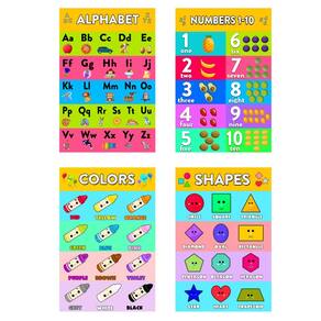 Apresentando nosso pacote de 4 pôsteres de aprendizagem para crianças pequenas — o companheiro educacional perfeito para a jornada de desenvolvimento de seu filho! Projetado para tornar o aprendizado uma experiência divertida e envolvente, este conjunto inclui pôsteres vibrantes e visualmente atraentes que abrangem conceitos essenciais da educação infantil: números, cores, formas e alfabeto. **Características principais: ** 1. **Aprendizagem abrangente: ** Cada pôster é cuidadosamente elaborado para fornecer uma visão geral abrangente do conceito específico. O pôster Numbers ajuda na contagem e na aritmética básica, o pôster Colors apresenta um espectro de tons, o pôster Shapes mostra várias formas geométricas e o pôster Alphabet ABC auxilia no reconhecimento de letras e na fonética inicial. 2. **Estimulação visual: ** Cores fortes e brilhantes e ilustrações cativantes em cada pôster são personalizadas para capturar a atenção do seu filho e estimular o aprendizado visual. O design atraente garante que esses pôsteres sejam educacionais e esteticamente agradáveis. 3. **Qualidade durável: ** Impressos em papel durável e de alta qualidade, esses pôsteres são feitos para resistir ao desgaste inevitável da infância. O tamanho de 12* 16 polegadas atinge o equilíbrio perfeito entre ser grande o suficiente para uma visibilidade clara e compacto o suficiente para um posicionamento versátil. 4. **Aplicação versátil: ** Se você está montando uma parede de sala de aula vibrante ou criando um ambiente inspirador de ensino doméstico, esses pôsteres são o complemento ideal. Eles também servem como ferramentas valiosas para os pais que buscam reforçar o aprendizado em casa de uma forma lúdica e interativa. 5. **Presente perfeito: ** Dê o presente do conhecimento! Este conjunto de pôsteres de aprendizagem infantil, pacote com 4 unidades, é um excelente presente para aniversários, chás de bebê ou qualquer ocasião em que a alegria de aprender seja celebrada. Transforme a experiência de aprendizado de seu filho com esses pôsteres educacionais e visualmente estimulantes. Peça seu pacote de 4 pôsteres de aprendizagem para crianças hoje e veja seu filho descobrir o mundo emocionante de números, cores, formas e alfabeto! Aprender nunca foi tão divertido.
