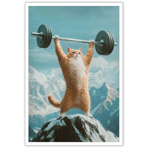 - Tema motivacional de condicionamento físico: esses pôsteres engraçados de ginástica para levantamento de peso para gatos dão um toque único à sua decoração de treino. Com gatos adoráveis em poses de musculação, essas estampas são perfeitas para inspirar motivação e adicionar um toque de humor a qualquer sala de ginástica ou academia em casa.