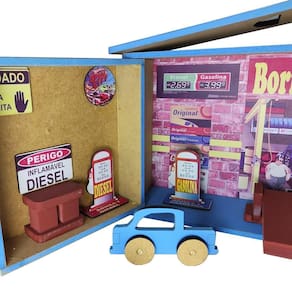 Posto De Gasolina Garagem Borracharia Estilo Maleta Madeira