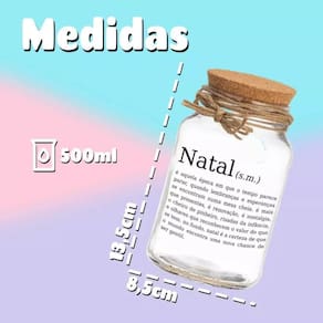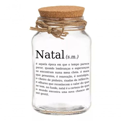 Pote 500ml Hermético Natal - Pote de Vidro Hermético 500ml com Tampa de Rolha