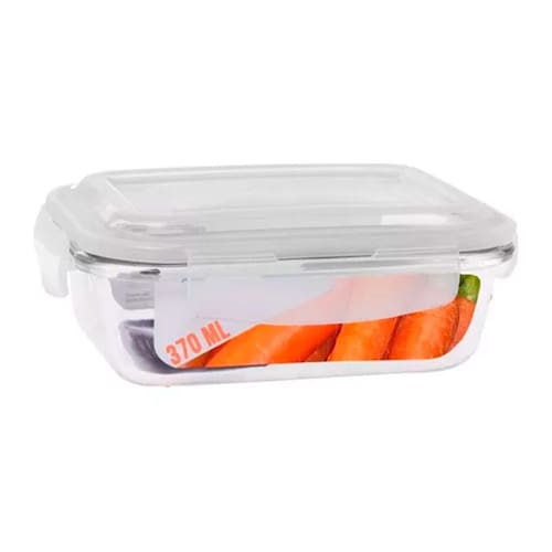 Pote para alimentos hermético marmita de vidro fit 370ml com borracha de vedação e trava na tampa Cor: branco Pote de vidro retangular tampa hermética 370ml