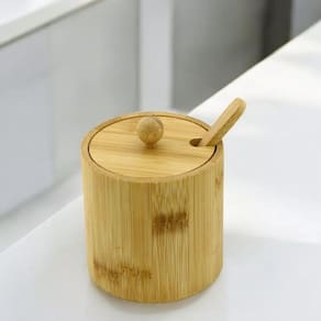Detalhes do produto: - Acompanha: 1 pote com tampa + 1 colher - Material: Bambu - Dimensões: Pote - 8cm de diâmetro x 8cm de altura Colher - 13cm - Capacidade: 200ml