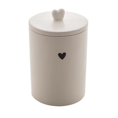 Pote Cerâmica Com Tampa Bambu Heart Branco 10X12Cm - LyorDescrição:Potiche / Pote de Cerâmica Cor brancaPossui tampa de bambu com pegador em formato de coração.Serva para armazenar alimentos secos, ideal também para decoração e guardar utensílios diversos.Super versátil