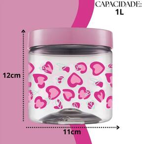 Pote Coracao 1 Litro - Coracoes ROSA Pote Pet 1000ml Coração Rosa - PANAMI