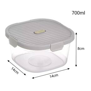 Pote de Alimentos Listrado 700ml Cinza   Instruções de uso: 1. Temperatura de operação do produto: 0C-100C; 2. Somente para forno de micro-ondas (a tampa deve ser removida). Não utilize em lava-louças, fornos convencionais ou esterilizadores; 3. Evite o uso com alimentos líquidos para prevenir vazamentos.   Observação: Este produto é feito de plástico; mantenha longe do fogo.