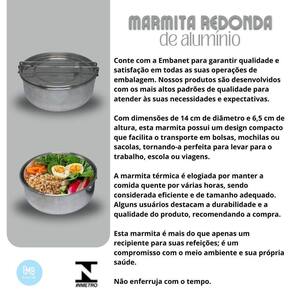 Desfrute de refeições deliciosas em qualquer lugar com a Marmita de Alumínio Premium da Embanet. Combinando estilo, praticidade e durabilidade, esta marmita é a escolha perfeita para quem busca uma solução conveniente para suas necessidades alimentares diárias.