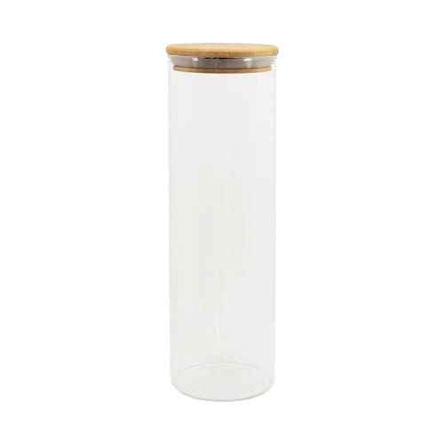 Características: - Material Premium: Feito em vidro transparente, permitindo visualizar o conteúdo de maneira prática. - Tampa de Bambu: Selada para proteger seus alimentos da umidade, garantindo frescor por mais tempo. - Facilidade de Limpeza: Pode ser lavado com esponja e detergente neutro, tornando a manutenção simples. - Dimensões Ideais: Com tamanho de 20 cm de altura e 9 cm de diâmetro, é perfeito para ocupar pouco espaço. - Design Circular: Adiciona um toque rústico e contemporâneo à sua decoração.