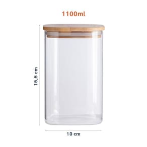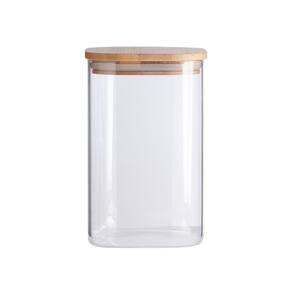 Pote De Mantimentos Quadrado Flat 1100Ml Tampa Bambu Oikos