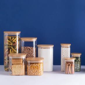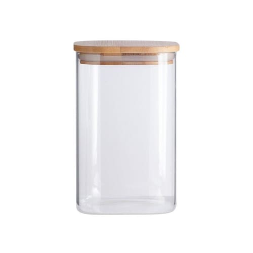 O Pote de Mantimentos Quadrado Flat com Tampa de Bambu da OIKOS é perfeito para organizar e conservar seus alimentos.