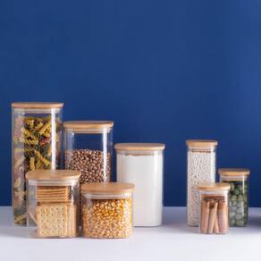 O Pote de Mantimentos Quadrado Flat com Tampa de Bambu da OIKOS é perfeito para organizar e conservar seus alimentos.